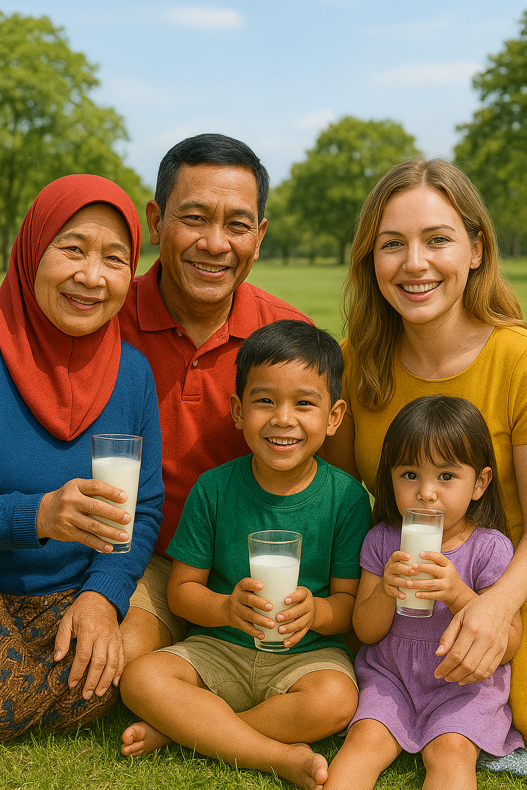 Dengan susu daymilk, tercermin keluarga yang sehat kuat dan bahagia, kakek nenek, ayah bunda, ananda semua susu